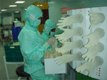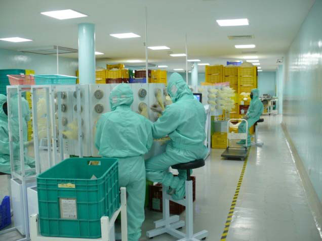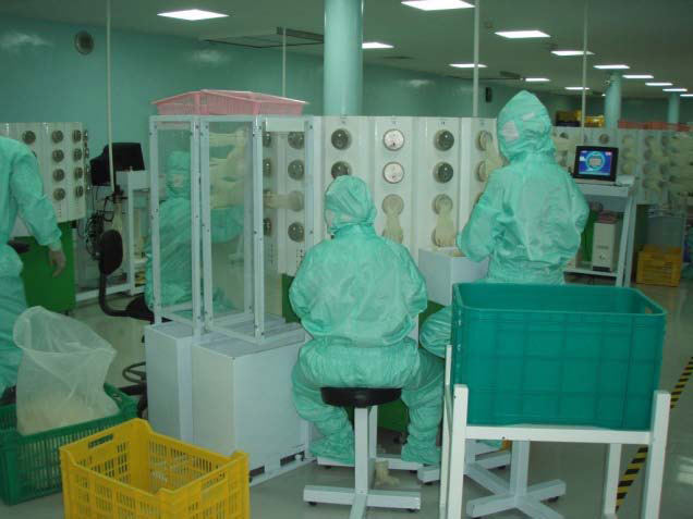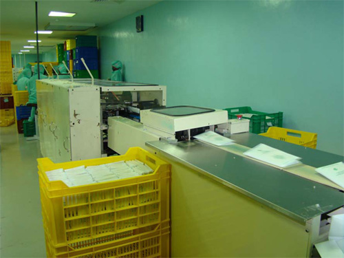 After the gloves are sealed in the pouch, it is packed to a box containing 50 pairs. Each pack is visually inspected for seal quality and random samples are drawn for leak testing to check sealing integrity. Eight boxes are packed in a shipping carton ready for the next process of sterilization.