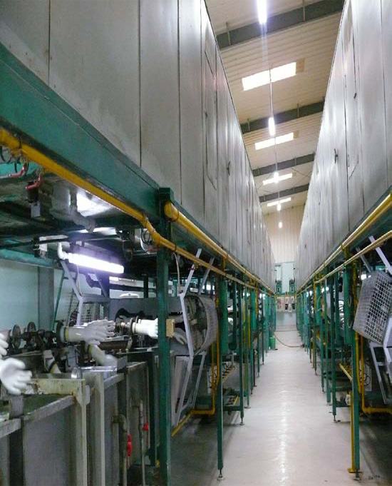 The hand shaped formers are coated with coagulant and dried then dipped into the latex compound to coat the former with a thin film of latex. The thin film of latex is then partially dried then leached several times to removed water extractable proteins and maintain at the required level. It then passes to several drying and vulcanization process and donning powder coating until the final product is produced.